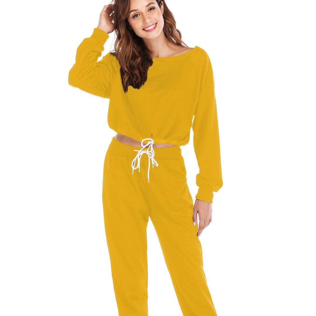 Spring Women Yellow Workout Sweatsuit Drawstring Two Piece Set Female Tracksuit Girls 2 Piece Sets Ladies Outfits Sportwear Hot