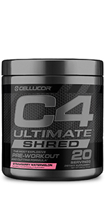Cellucor C4 Ultimate Shred Pre Workout Powder Fat Burner For Men Women Weight Loss Supplement With Ginger Root Extract Strawberry Watermelon 20