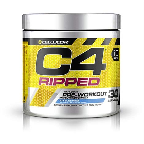 Cellucor C4 Ripped Explosive Pre Workout Supplement And Cutting Formula Icy Blue Razz 30 Servings