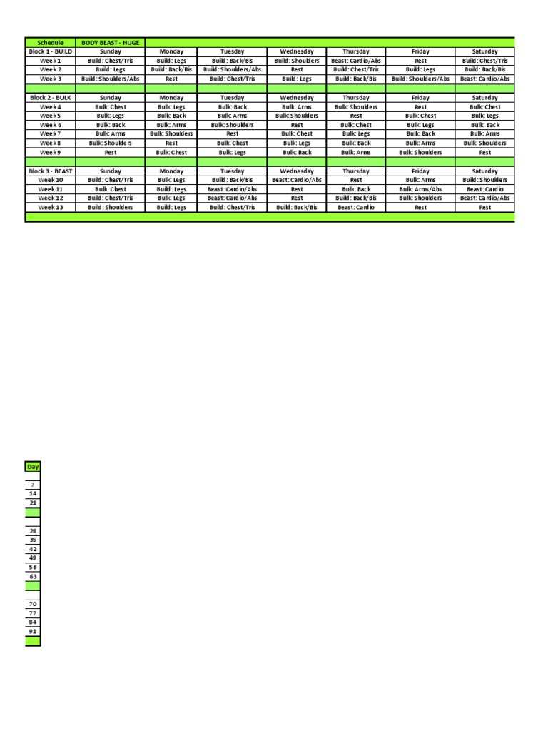Body Beast Workout Schedule Worksheets And Calendar Downloads