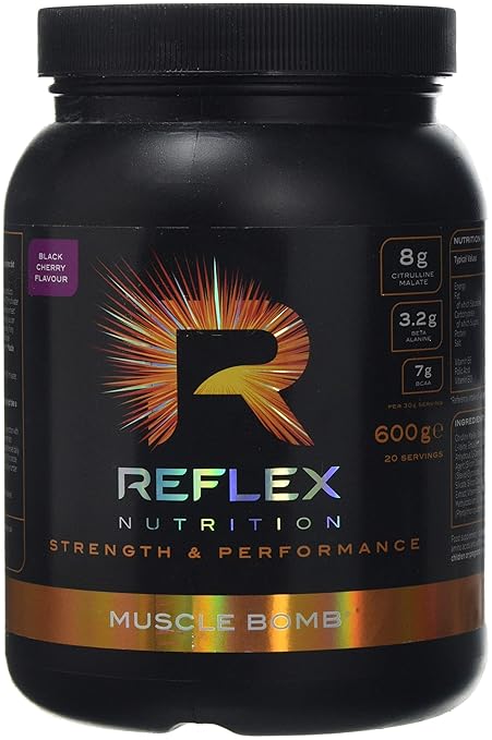 Reflex Nutrition Muscle Bomb With Caffeine Ultimate Pre Workout Powder 7g Bcaa S 2g L Carnitine 3 2g Beta Alanine 1g Taurine Black Cherry 600g