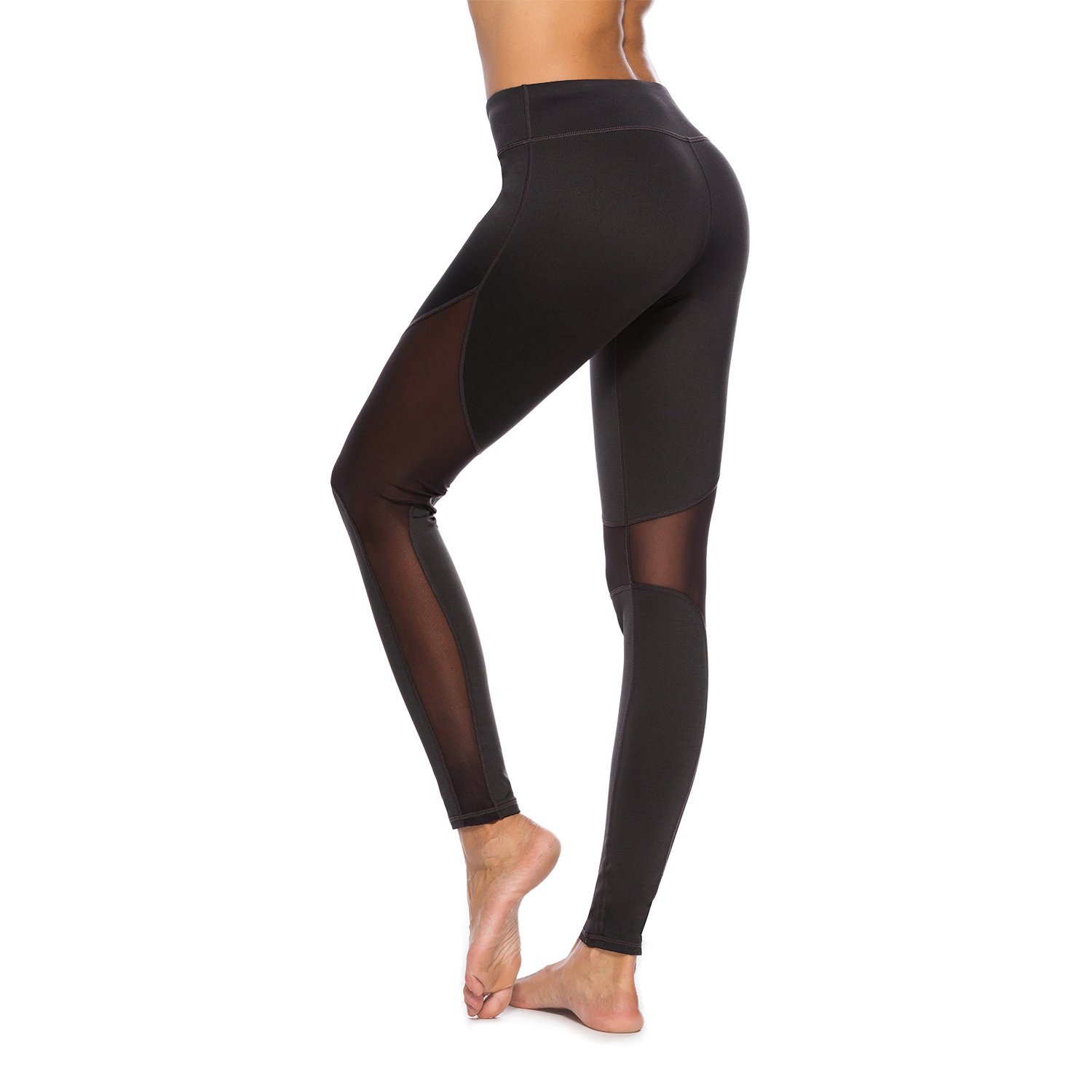 Black Nylon Spandex Fitness Compression Tights Workout Leggings Women Mesh Splicing Yoga Leggings With Side Pocket Buy Yoga Leggings Mesh Yoga