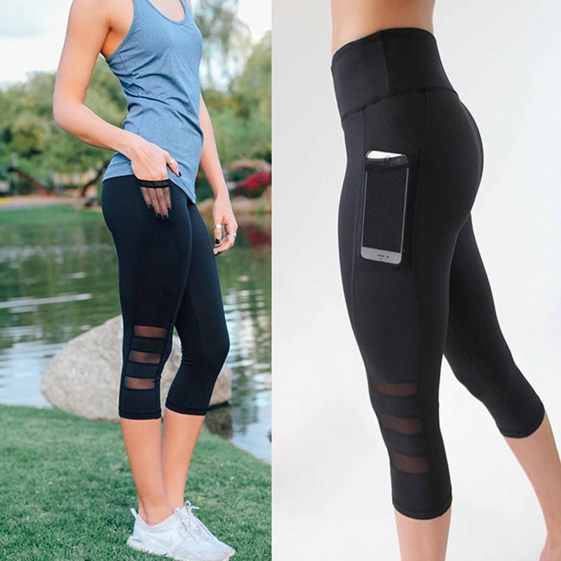 Sexy Mesh Workout Leggings Capri Pants With Pocket High Waist Black Fitness Legging Patchwork Breathable Legging Pants Women Ali 97311120