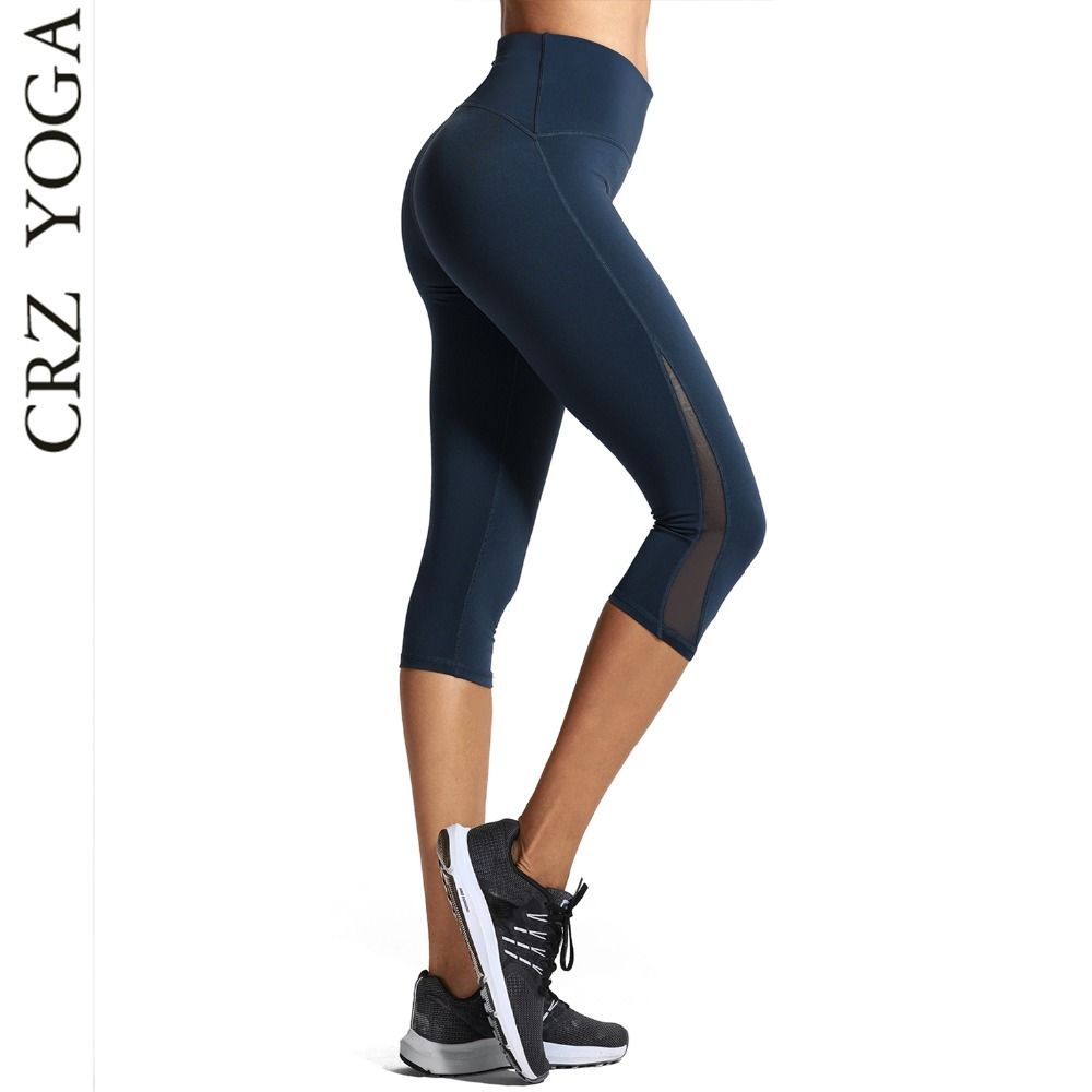 Crz Yoga Women S High Waist Squat Proof Capri Cropped Mesh Workout Leggings With Pocket