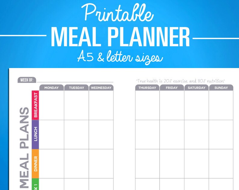 Printable Meal Planning Calendar Tracker Digital Pdf Download Weekly Nutrition Diet Tracker