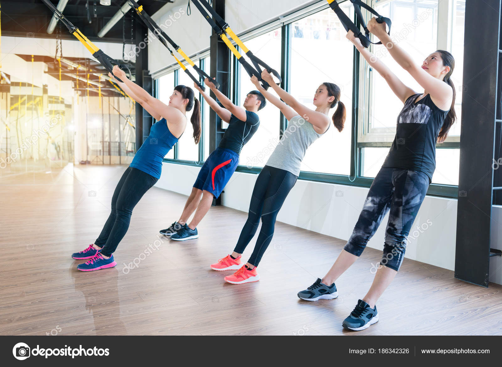 Royalty Free Photo 9285620 Fitness Trx Training Exercises At Gym Woman And Man