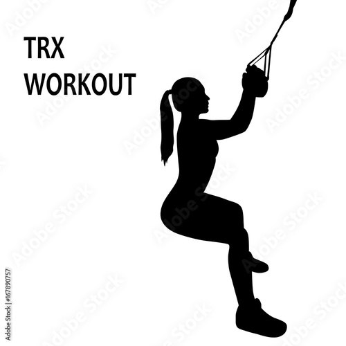 Silhouette Of Sporty Girl Trx Suspension Training Stock
