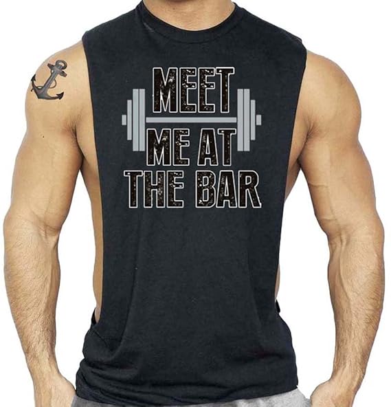 Meet Me At The Bar Workout T Shirt Bodybuilding Gym Vest Tank Top Black