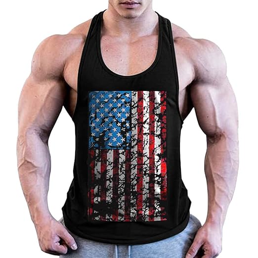 Mens America Flag Print Fitness Bodybuilding Stringer Hooded Tank Tops Sleeveless Muscle Workout Vest