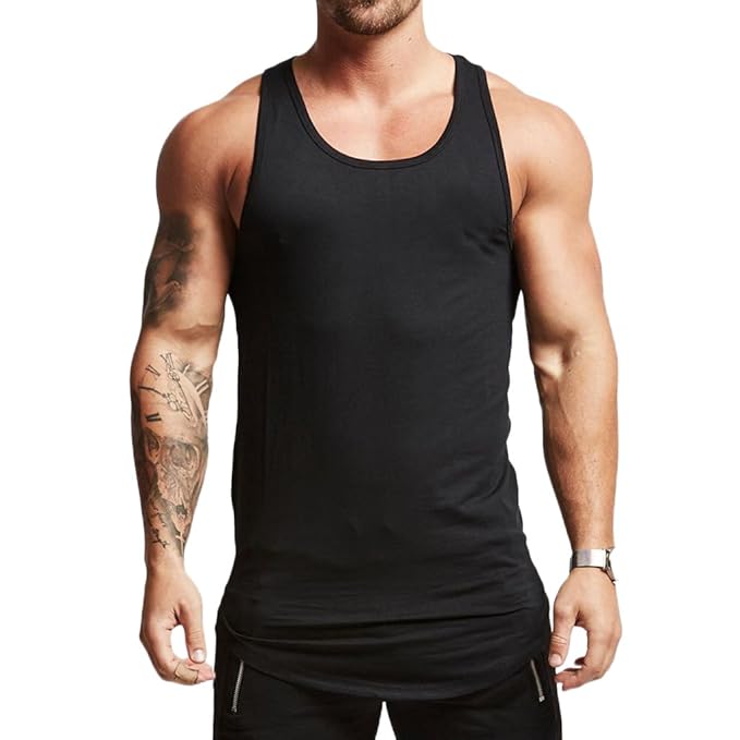 Magiftbox Mens Essential Longline Workout Stringer Cotton Tank Tops Gym Shirts Sports Vest T04