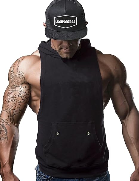 Daupanzees Mens Workout Hooded Tank Tops Sleeveless Gym Hoodies With Kanga Pocket Cool And Muscle Cut