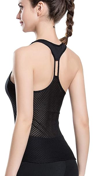 Vutru Women S Yoga Tank Top Strappy Racerback Workout Tops Built In Sports Bra