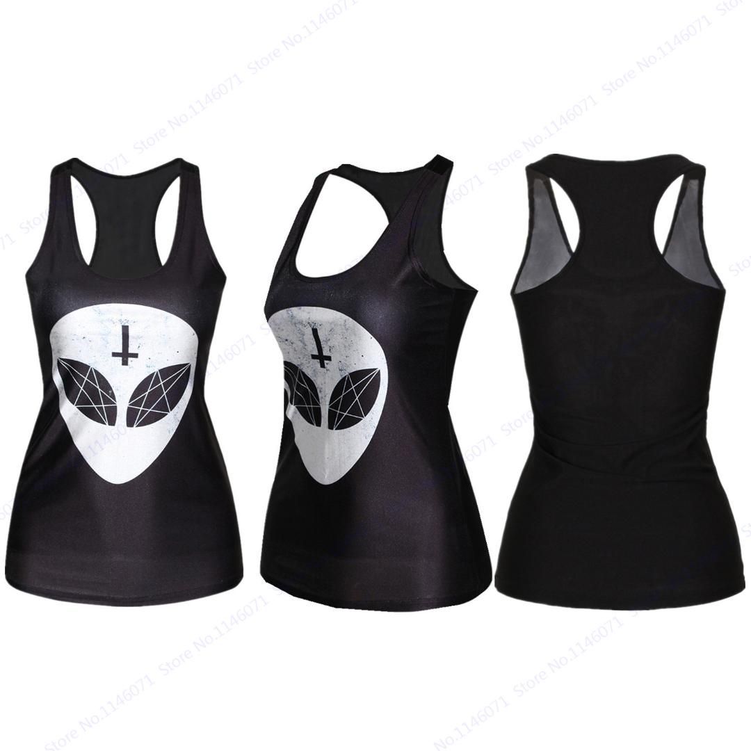 White Alien Face Fitness Gym Workout Tanks Top Black Loose Sleeveless Ladies Running Yoga Shirt Summer Quick Drying Vests Womens