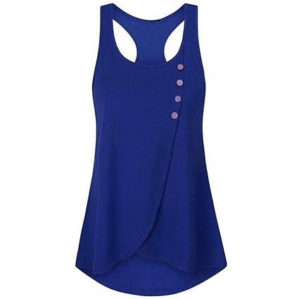 Cat Button Wrap Loose Fit Tank Tops With Scallop Bottom Athletic Workout Flowy For Women Blue M