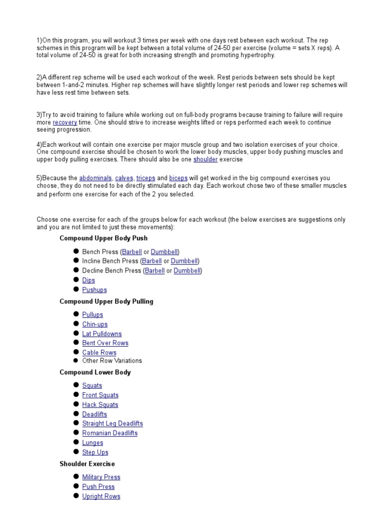 3 Day A Week Workout Plan 3 Day Full Body Workout Routine