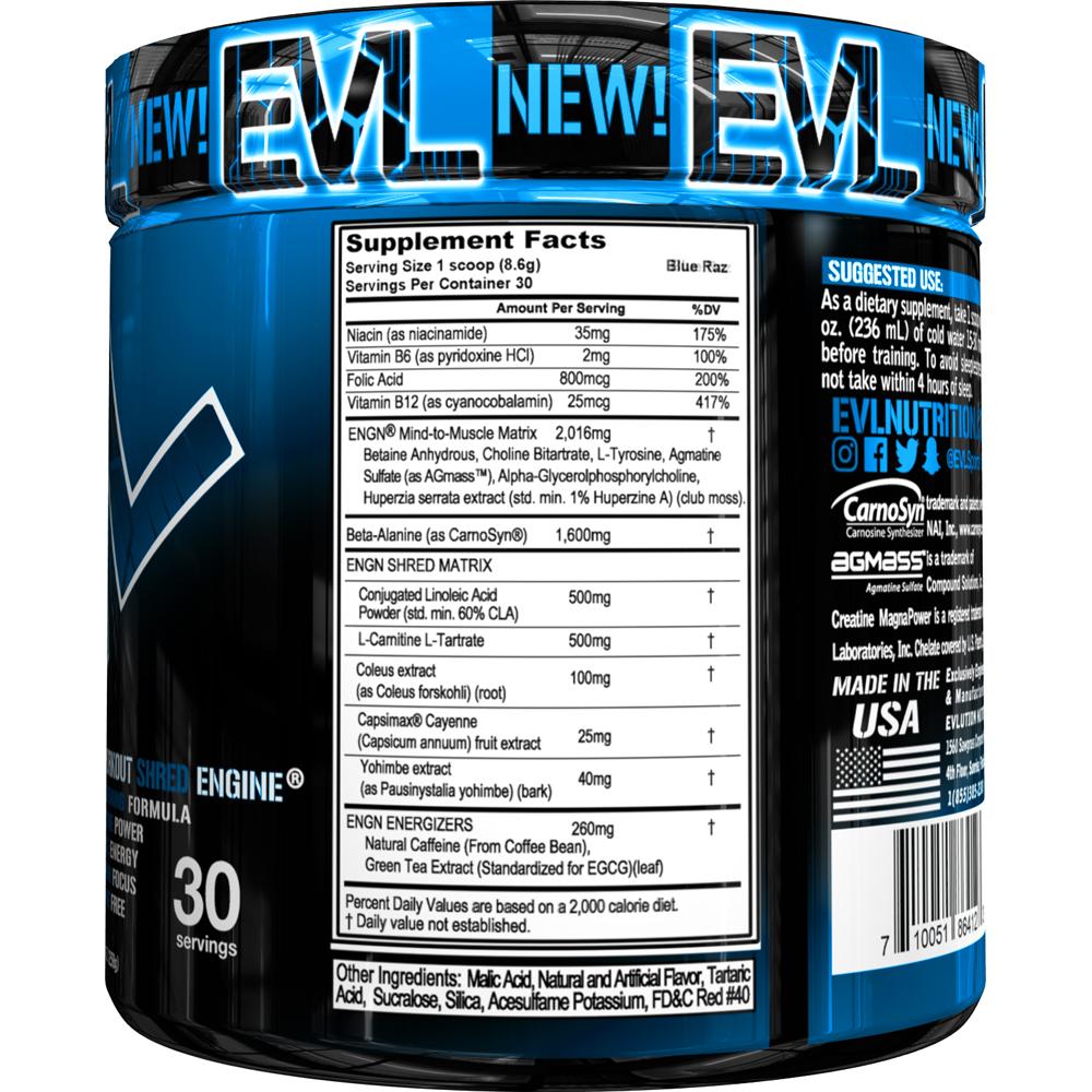 Evl Pre Workout Shred Engine Blue Raz 30 Servings