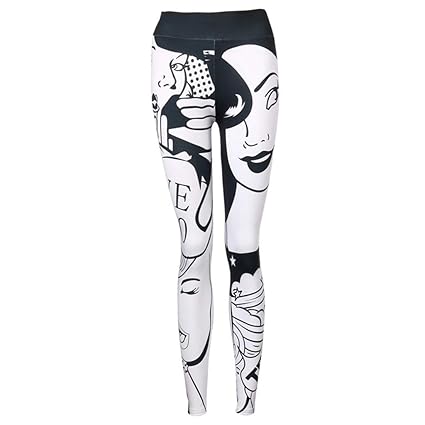 Amazon Com Face Print Sports Leggings Women Fitness High