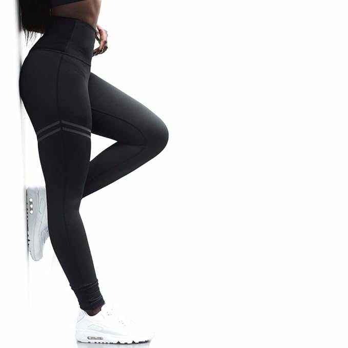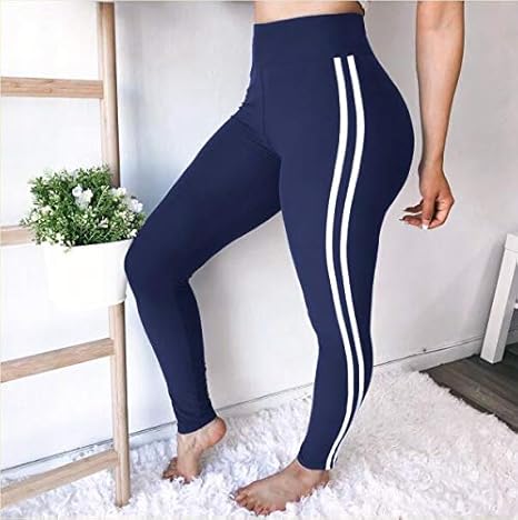 Seasum Women Striped Yoga Leggings High Waist Slimming Pants Waistband Workout Sport Fitness Gym Tights Fit Dry