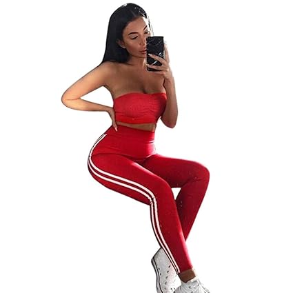 Amazon Com Ewdvqqq Women Girl Yoga Pant White Stripes Red