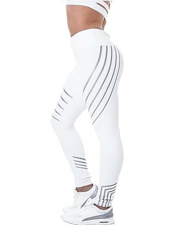 Amazon Com Baohoke Workout Leggings White Side Strips