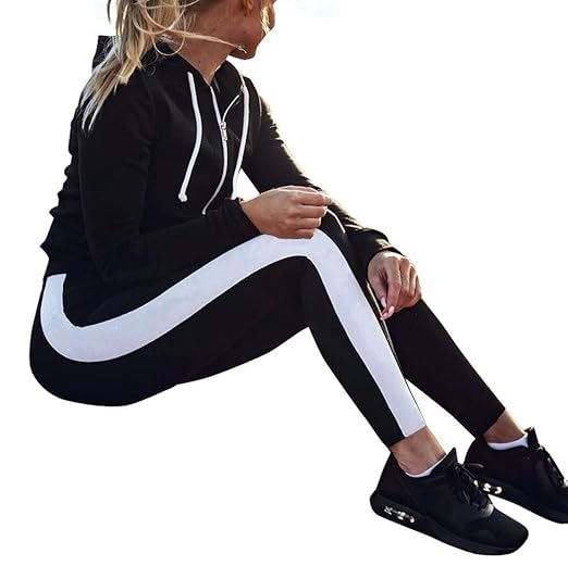 Faithtur Color Block Tracksuit Activewear Side Stripe Workout Leggings Yoga Pant