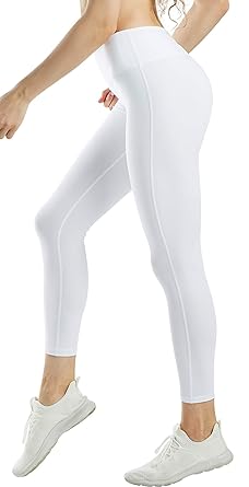 Omkagi Women S Yoga Pants High Waist Workout Leggings Tummy Control Running Activewear M White