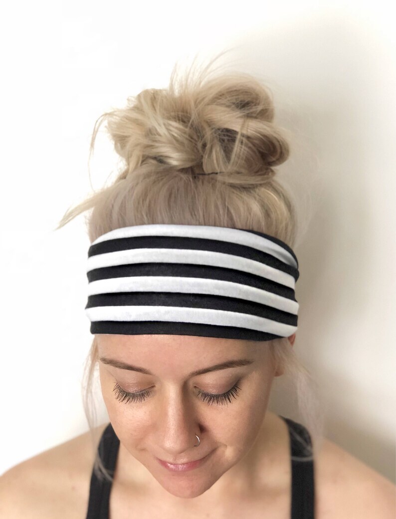 The Fit Band Women S Fitness Workout Headbands For Women Black And White Striped Yoga Band Fitness Headband