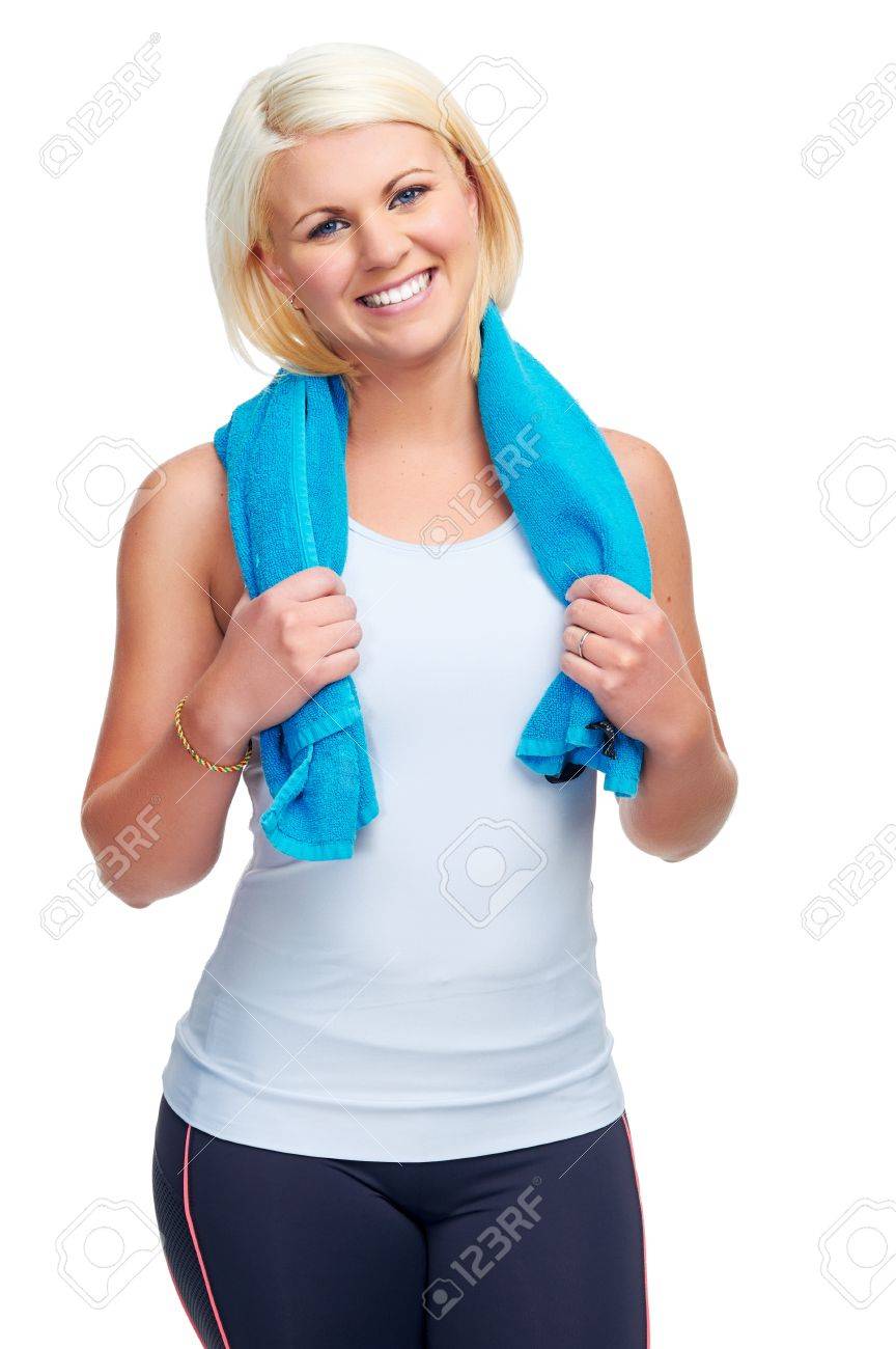 Fitness Gym Woman With Workout Towel Happy And Smiling