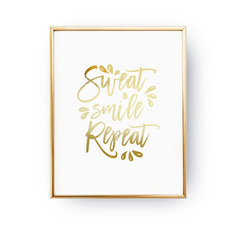 Sweat Smile Repeat Dorm Wall Decor Real Gold Foil Fitness Room Gym Decor Workout Quote Workout Routine Typography Print Home Decor