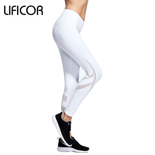 Us 13 99 25 Off Womens Yoga Pants Fitness Sports Leggings Mesh Tight Leggings Capri Running Workout Gym Sweatpants Sports Clothes White Black In