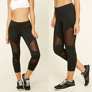 Women Blacksports Workout Fitness Mesh Splice Yoga Gym Running 3 4 Length Sweater Capri Pants Stretch Leggings Buy Workout Leggings Mesh Splice