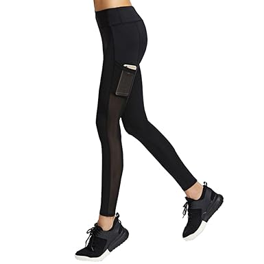 Chikool Women S High Waist Yoga Pants Mesh Workout Gym Running Leggings Inner Pocket