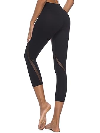 Chicholic Women S Workout Leggings Mesh Yoga Capri Power