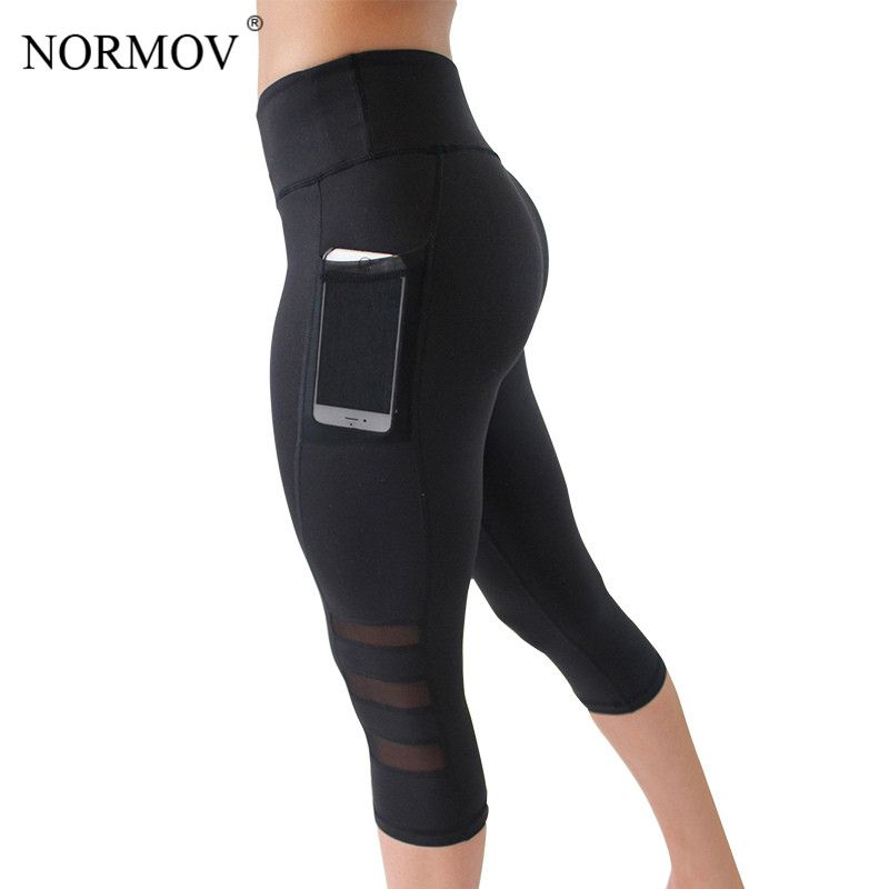 Normov Summer Mesh Patchwork Leggings Women Pocekts Capri Pants Women Fitness Sportswear Leggins Sexy Workout Leggings