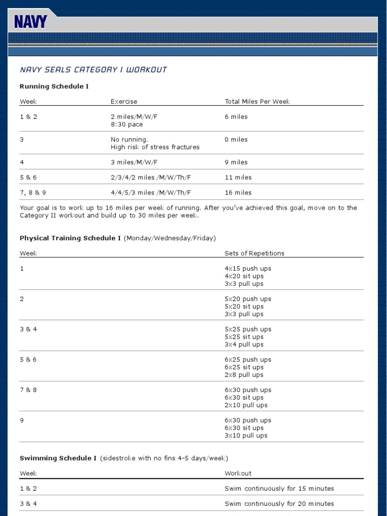 Navy Seals Workout Plan Pdf Sport1stfuture Org