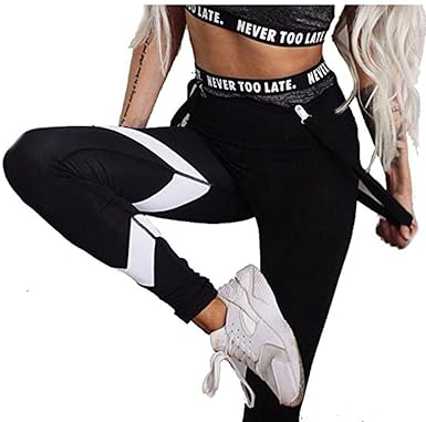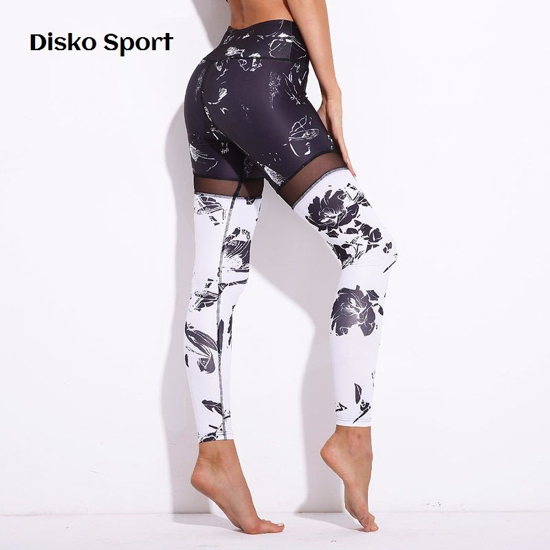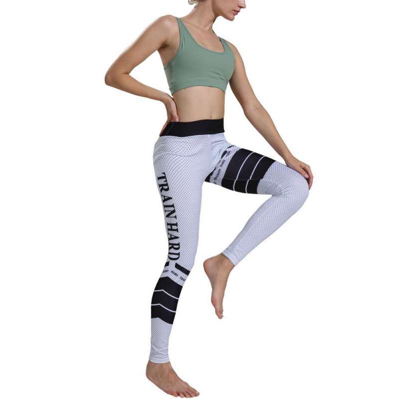 High Waist Print Hips Leggings Fitness Sports Leggings Workout Legging Elastic Slim Black White Pants Beautiful