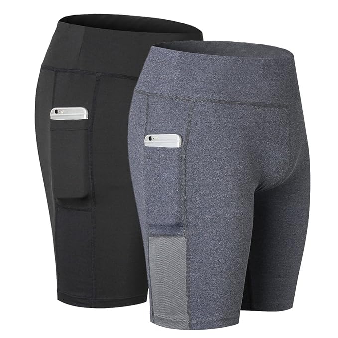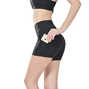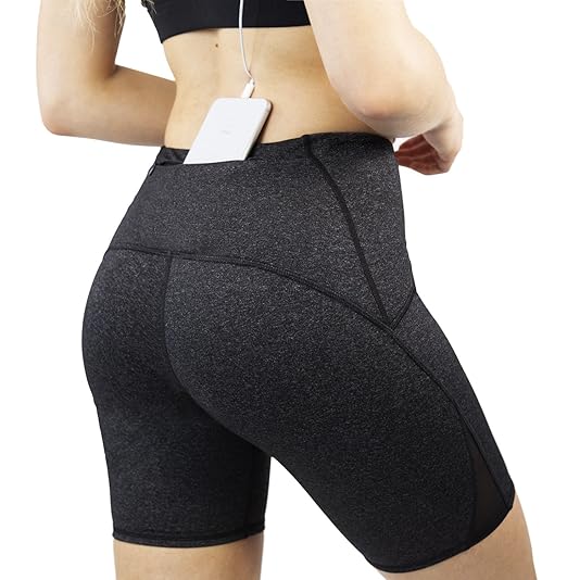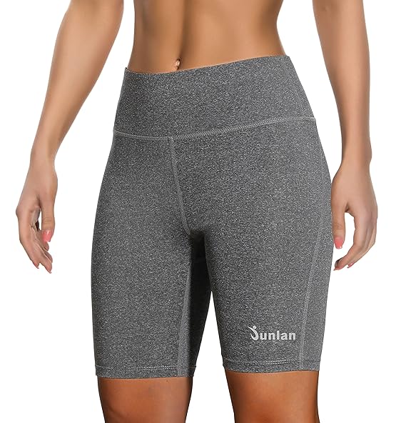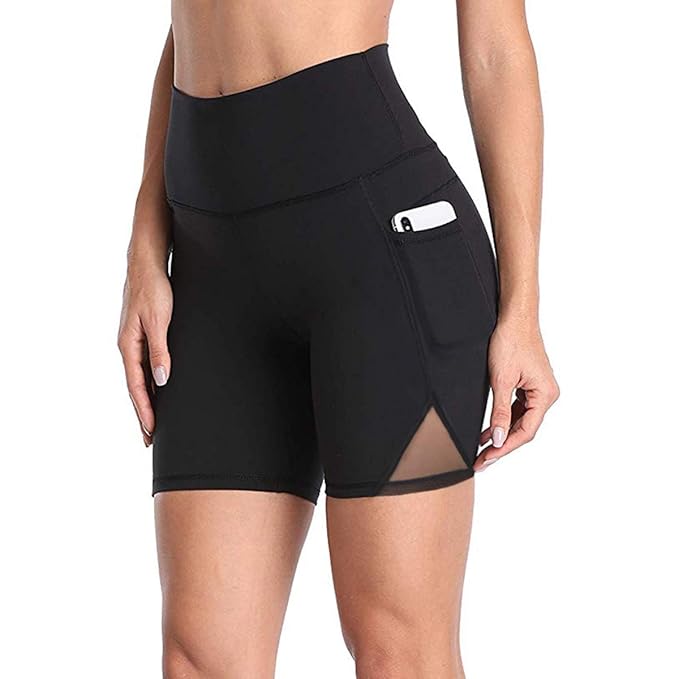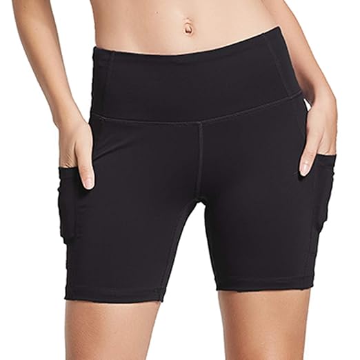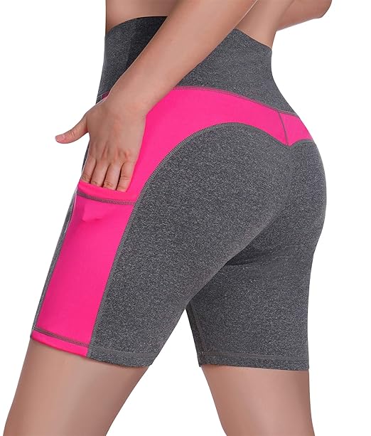 Sunnybuy Women High Waist Spandex Shorts Tummy Control Workout Compression Shorts Running Yoga Shorts With Pockets
