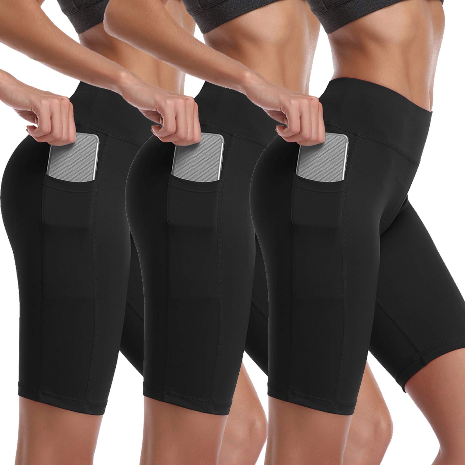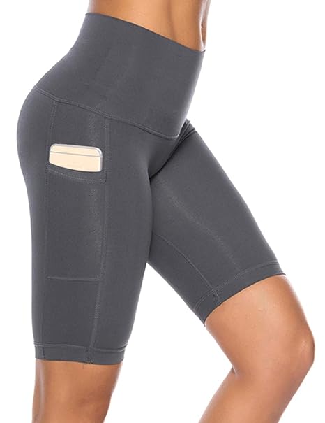 Myifu Womens Spandex Yoga Shorts High Waist Stretch Workout Sports Bike Running Shorts With Pockets