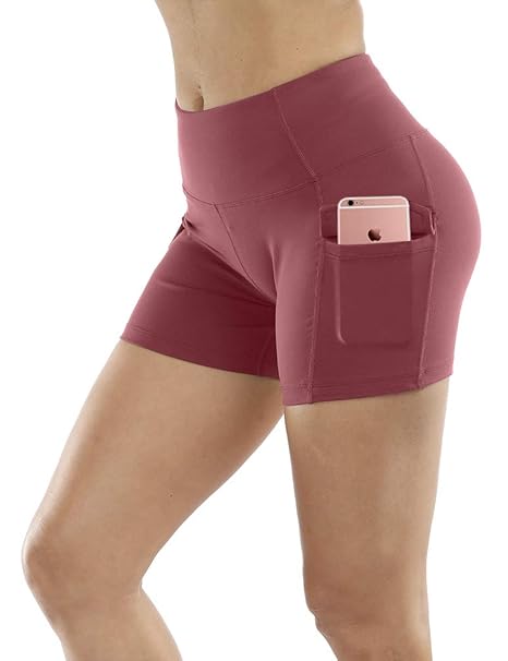 Ododos High Waist Out Pocket Yoga Short Tummy Control Workout Running Athletic Non See Through Yoga Shorts