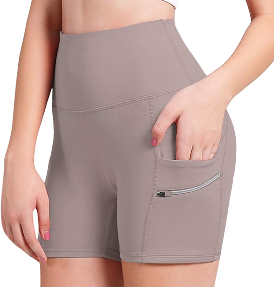 Voeons Yoga Shorts For Women High Waist Workout Running Tummy Control Shorts With Hidden Back Zip Pockets