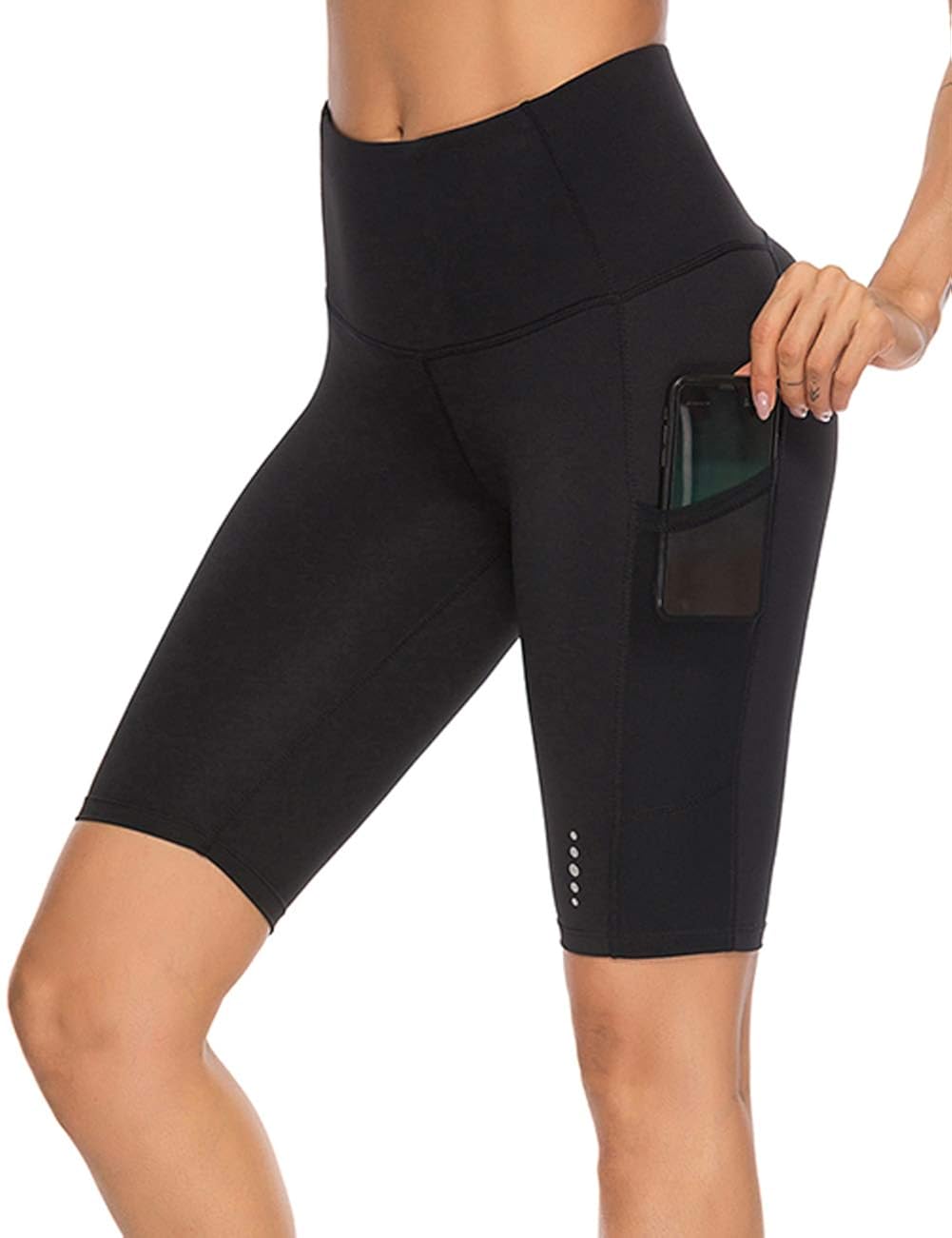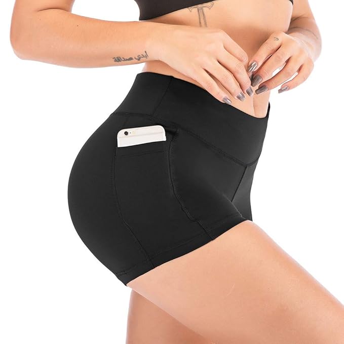 Cassiecy Women High Waist Tummy Control Workout Yoga Shorts Side Pockets Sport Shorts