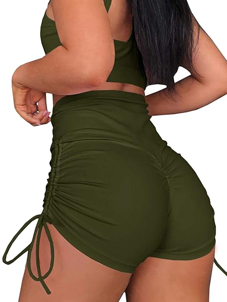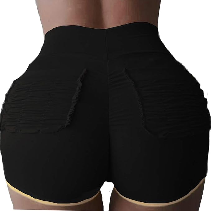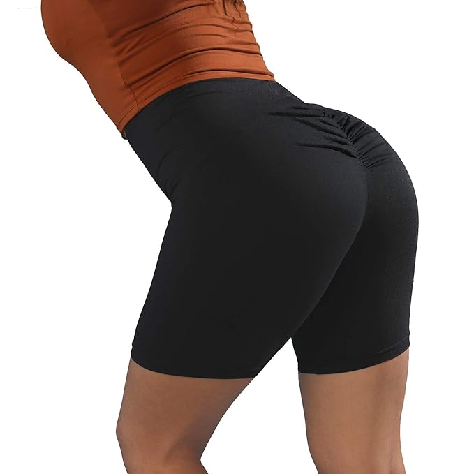 Susupeng Women High Waist Back Ruched Hip Push Up Stretch Athletic Workout Yoga Shorts Bottoms