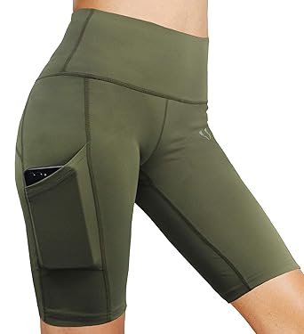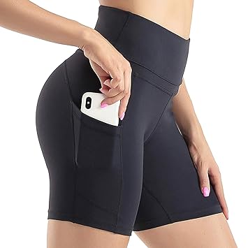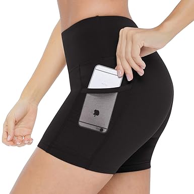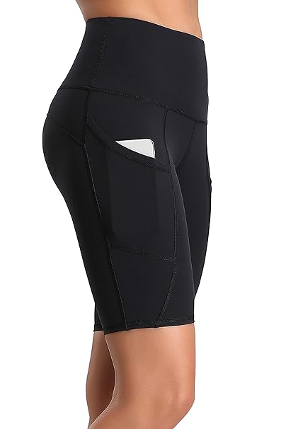 Persit Women S High Waist Workout Yoga Shorts With Side Inner Pockets Non See Through Tummy Control Athletic Shorts