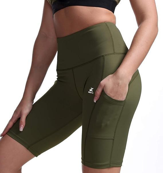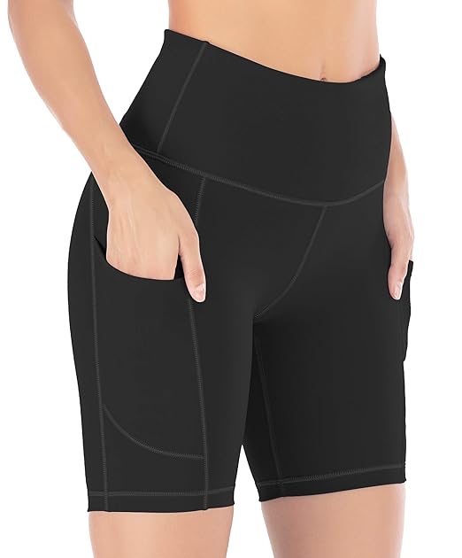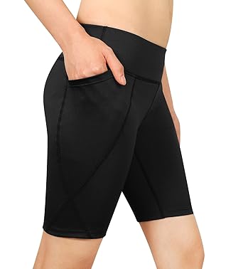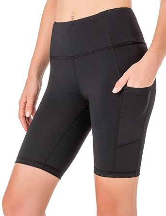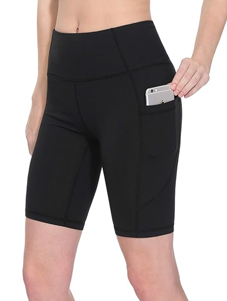 Iooho Women S 8 High Waist Yoga Shorts Cotton Compression Workout Bike Shorts Side Pockets Biker Shorts