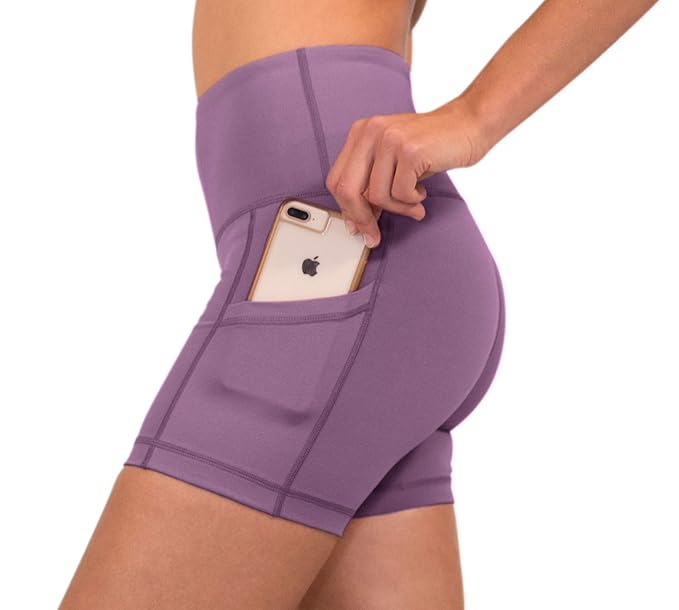 Hiskywin 5 8 Inseam High Waist Women Yoga Shorts Tummy Control Stretch Workout Running Shorts With Pockets