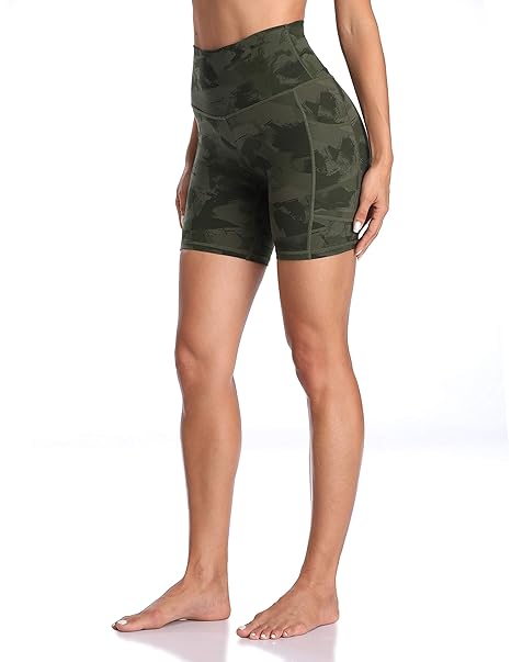 Oalka Women S Short Yoga Side Pockets High Waist Workout Running Shorts