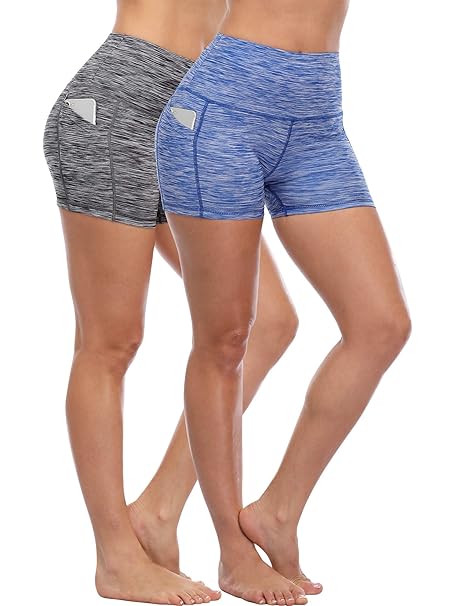 Icyzone Athletic Shorts For Women High Waist Workout Running Yoga Exercise Gym Shorts With Pockets