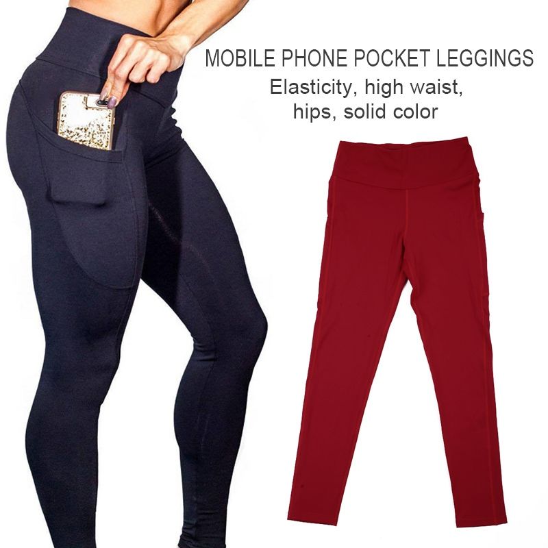 Ready Stock Women S High Waist Nine Pants Pure Color Mobile Phone Pocket Ladies Yoga Pants Fitness Pants Women