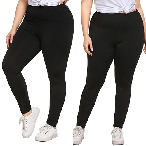 Womens Plus Size Fitness Leggings High Waist Elastic Waist Workout Exercise Solid Black Stretched Pencil Pants Jeggings Leggins