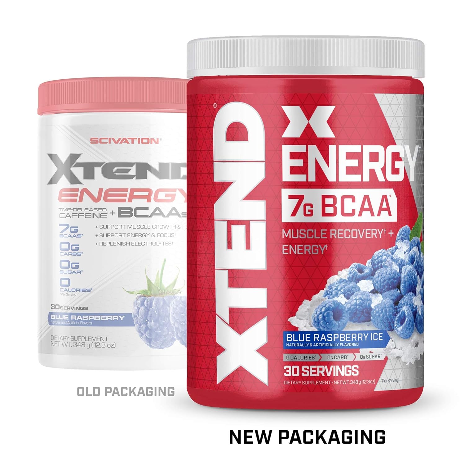 Xtend Energy Bcaa Powder Blue Raspberry 125mg Caffeine Sugar Free Pre Workout Muscle Recovery Drink With Amino Acids 7g Bcaas For Men Women